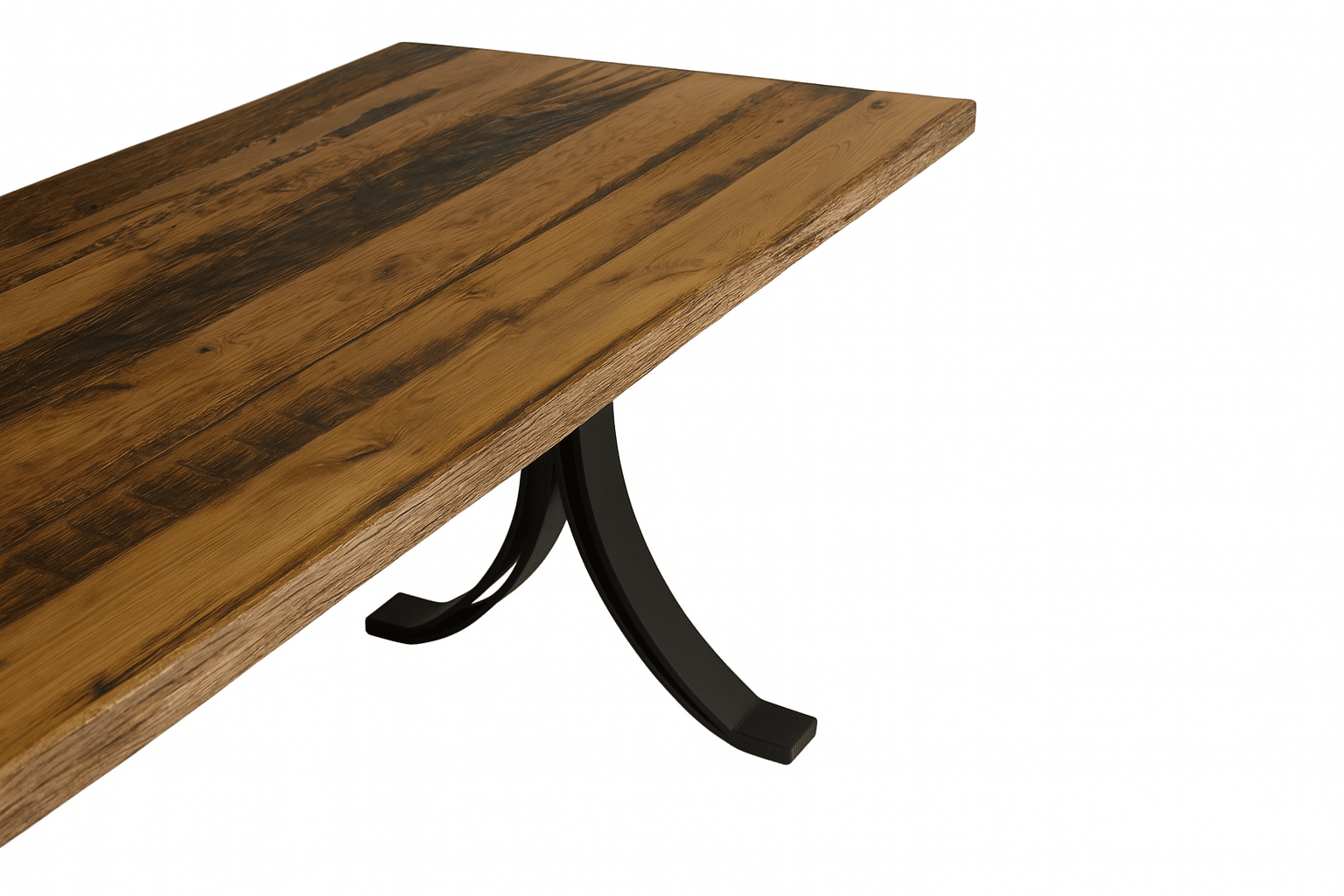 This statement piece stands on custom-made craftsman steel taper legs, precision-welded and powder coated in matte black for a sleek yet industrial look. These durable steel legs not only provide rock-solid support but also add a bold, modern contrast to the rustic oak top.